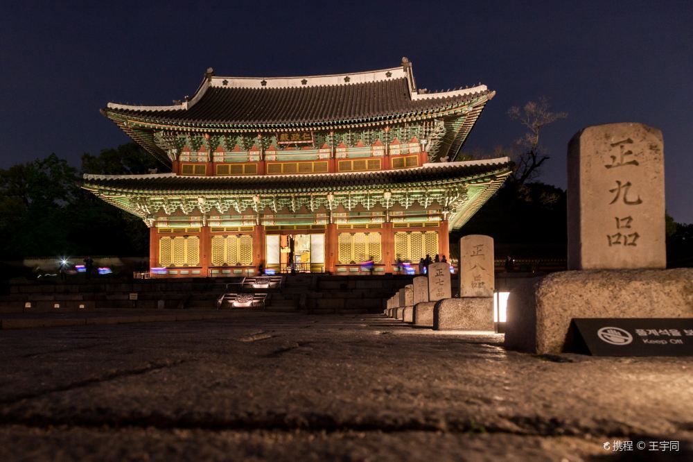 昌德宫位于钟路区卧龙洞,分为公共空间和王室的生活空间。昌德宫是维系朝鲜时期宫殿建筑正统的宫殿,其后苑是国王的休息场所,内有300多年树龄的巨木及池塘、亭子等设施。另外,《屋塔房王世子》也曾在此取景地。