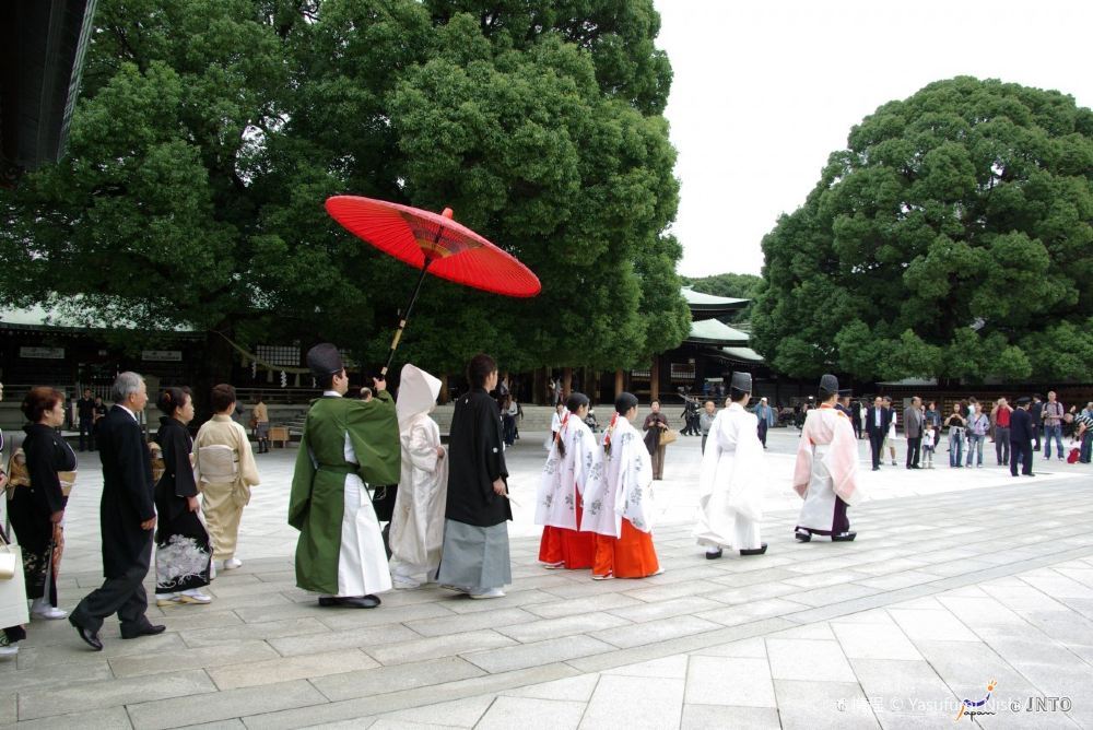 明治神宫是日本神道的重要神社,位于涩谷区原宿一带的代代木公园北侧,是东京市中心除皇居外大的一块绿地。这里供奉着明治天皇及昭宪皇太后的灵位。每年都有很多人来此参拜祈福,尤其在元旦时参拜人数特别多。