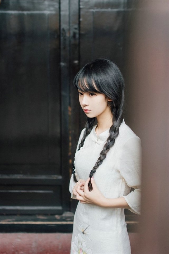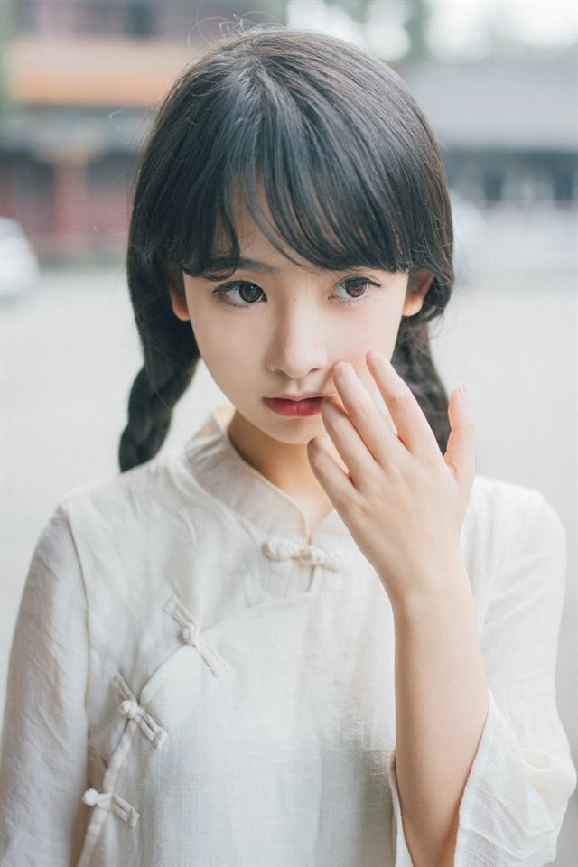 可爱萝莉民国长裙户外写真照图片