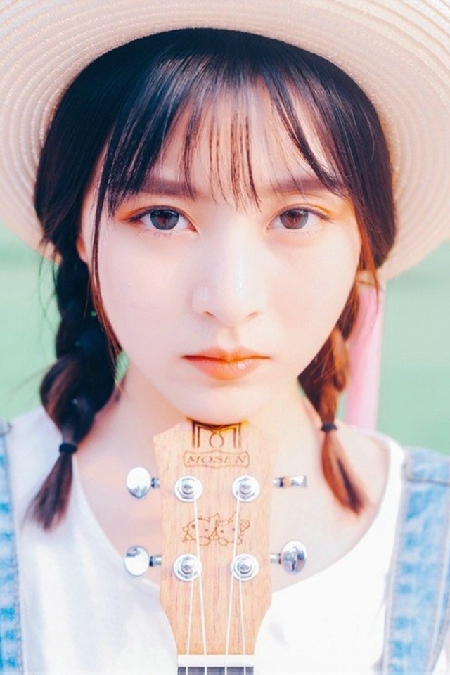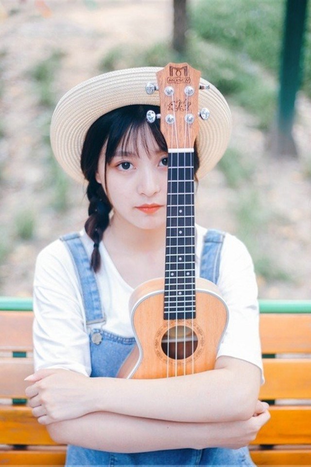 清纯校园风吉他小美女图片