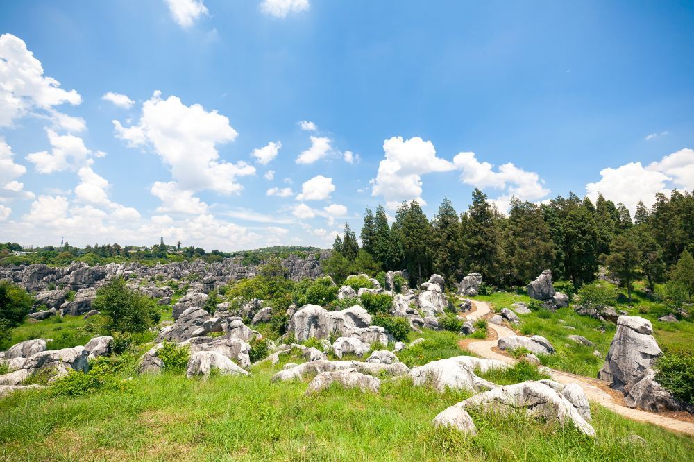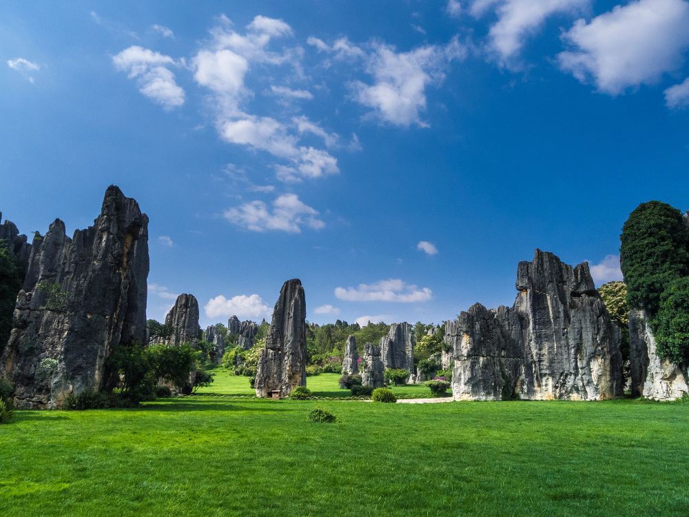 石林景区位于昆明石林县,是昆明的必游景点之一。石林是典型的喀斯特特色地貌,石峰、石芽、落水洞、地下河遍布,峰林幻化成各种形态,剑状、塔状、蘑菇状等等,千奇百怪美轮美奂。