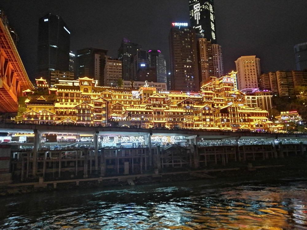 朝天门广场附近的码头,是夜游两江的出发地。