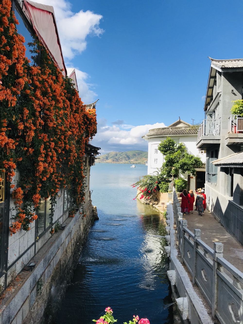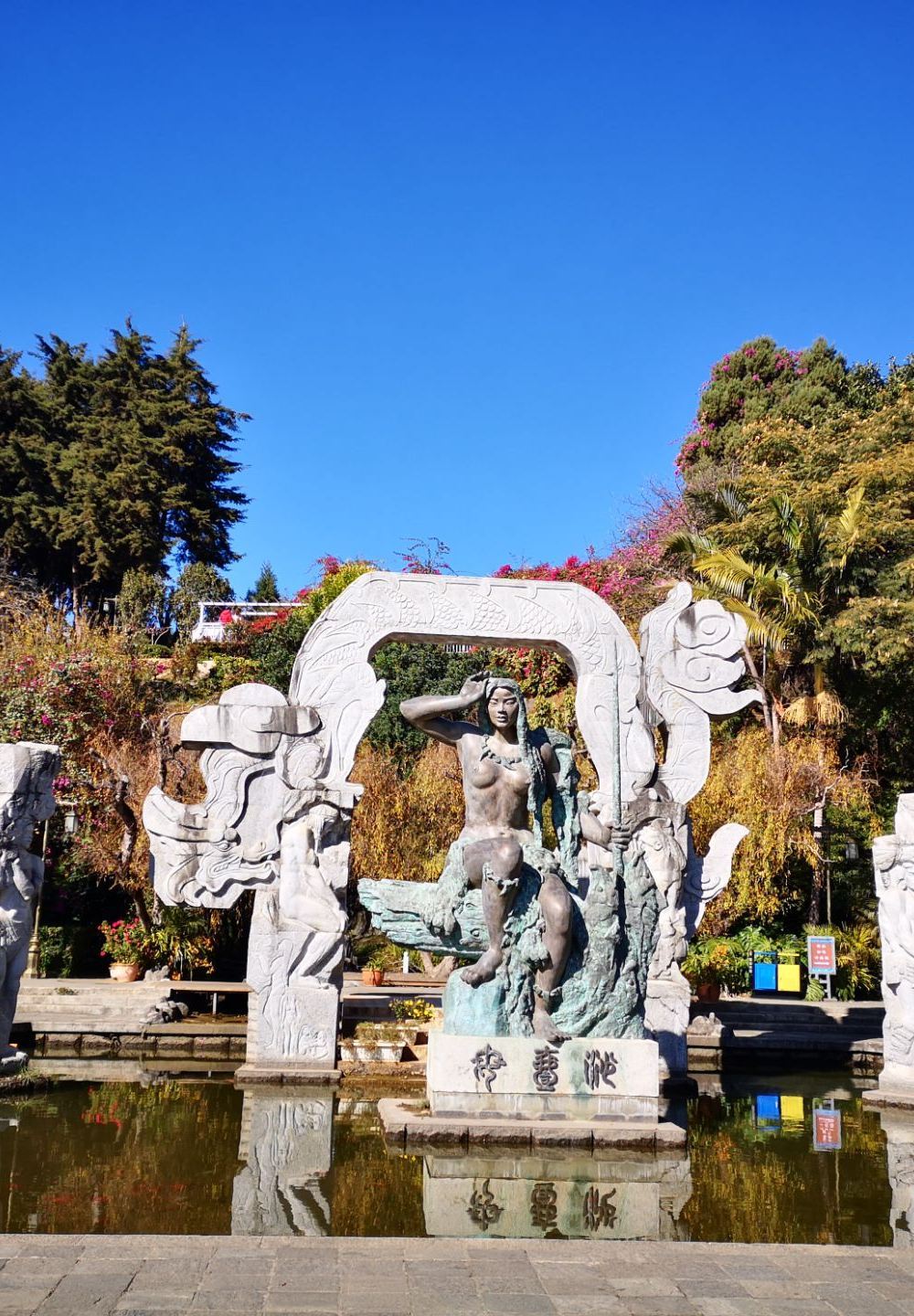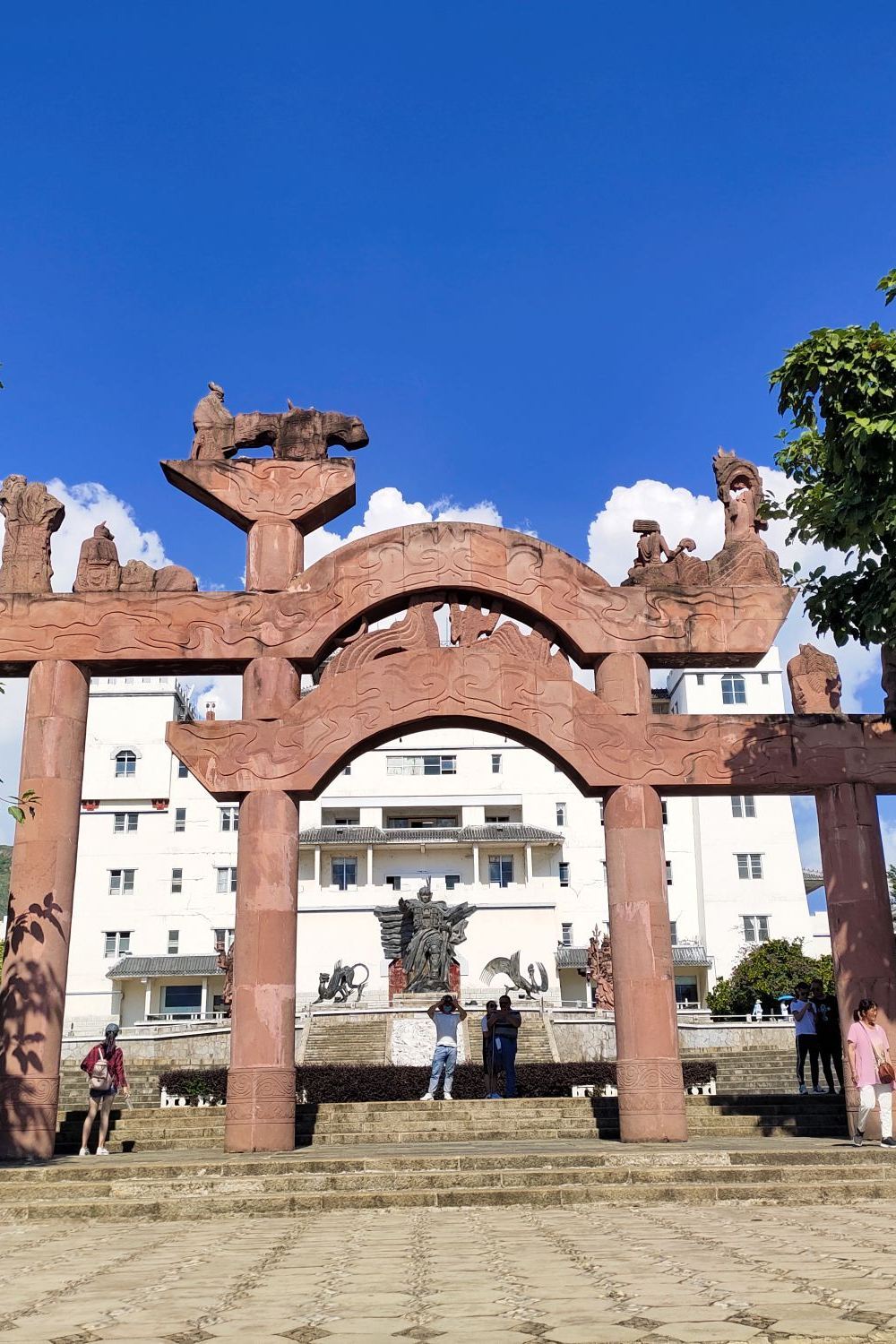 乘轮渡登上小岛,首先映入眼帘的是沙壹母群雕。根据《后汉书·西南夷列传》中记载的有关大理一则神话雕刻而成的。继续前行是福星广场,这是岛上的主要景观之一。海边的人工沙滩上常有情侣在此拍摄婚纱照,也为小岛增加了许多温馨的气氛。