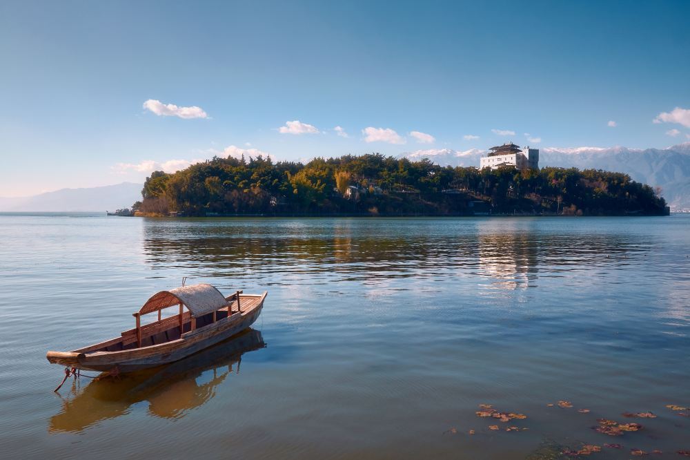 南诏风情岛是洱海中的小岛,位于洱海东北部的双廊村对面。这里风光秀美,岛上有不少风格各异的客栈,非常漂亮。岛上还设有人工沙滩,是看洱海的好地方,很多人都会来这里拍婚纱照。