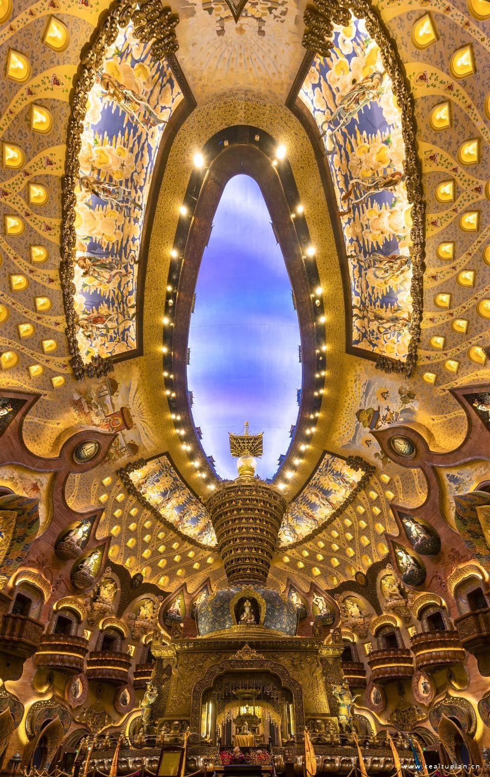 佛顶宫据说是斥资40亿打造的精美宫殿,以佛祖顶骨舍利供奉为主题,分为大穹顶和小穹顶两个部分,寓意外供养和内供养。佛顶宫利用原有矿坑建地宫,地下六层,地上三层,很是庄严气派。近年,释迦牟尼佛顶骨舍利将在牛首山被长期供奉,游客可于特殊佛教节日前往佛顶宫瞻礼,具体瞻礼舍利的时间可致电景区咨询。