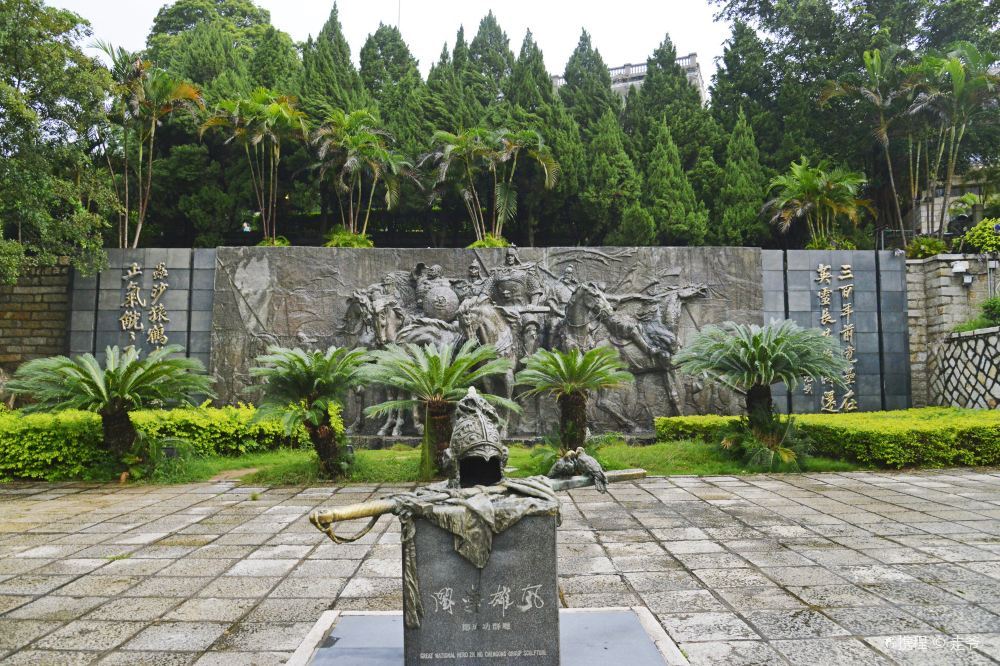 还有以郑成功为主题内容的南碑廊、北碑廊等都以不同形式,不同角度,再现郑成功叱咤风云英雄气概。,其名取自郑成功的诗句“思君寝不寐,皓月透素帏”中的“皓月”二字,寄托对英雄的缅怀和对台湾同胞的思念。