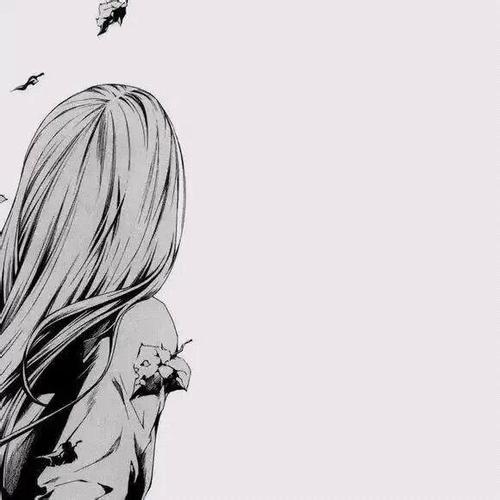 动漫女生长发背影头像黑白