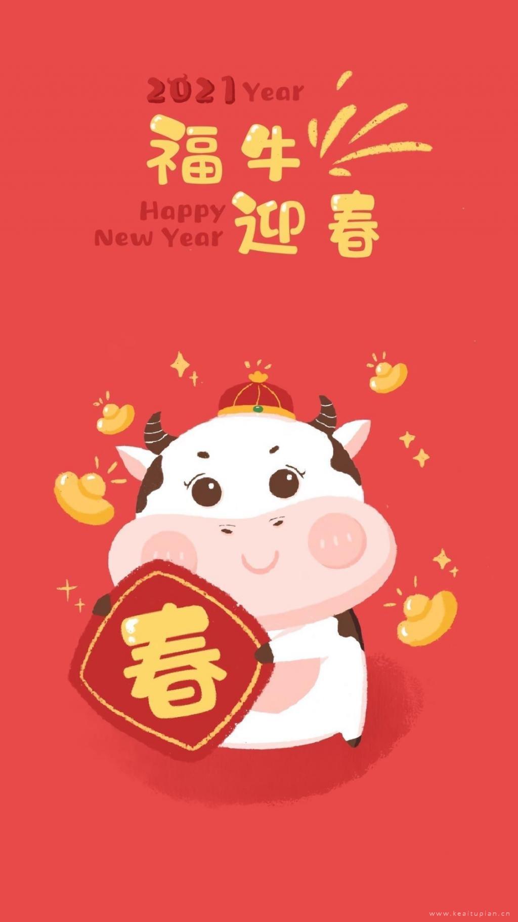 2024牛年四字问候语春节卡通年活泼可爱图片