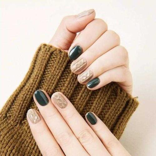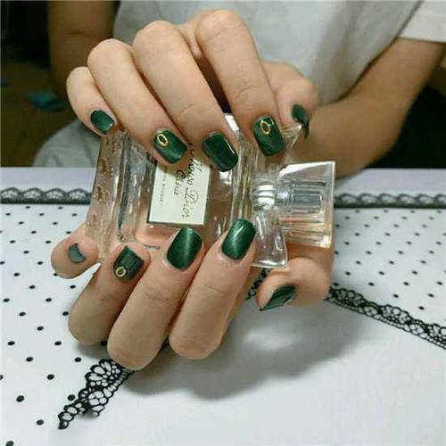 复古色系的美甲图片 复古深墨绿的美甲