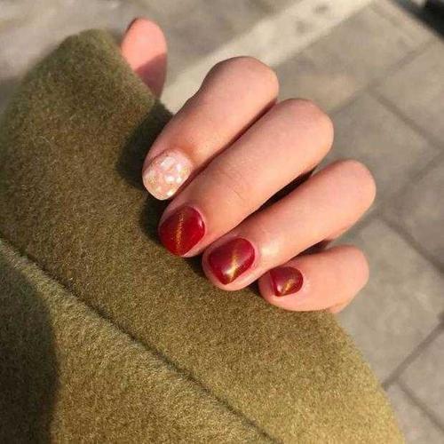 秋冬红棕色美甲93巨显白枫叶色系晕染撞色 今日分享