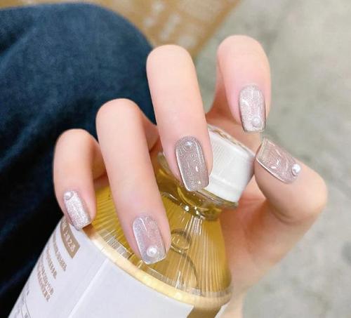 香槟色闪亮的美甲图片香槟色指甲油美甲图片4