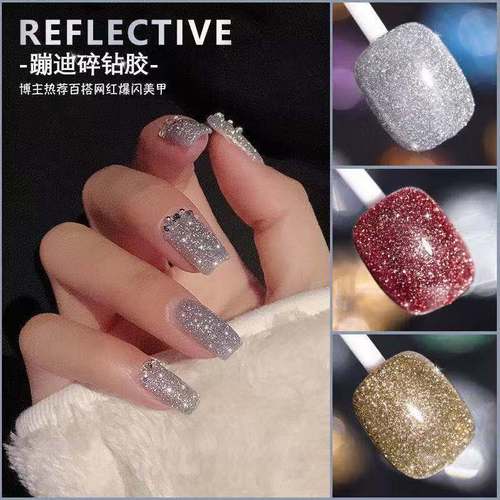 网红爆闪碎钻甲油胶2022新款美甲蹦迪粉璀璨细闪流行色指甲光疗胶
