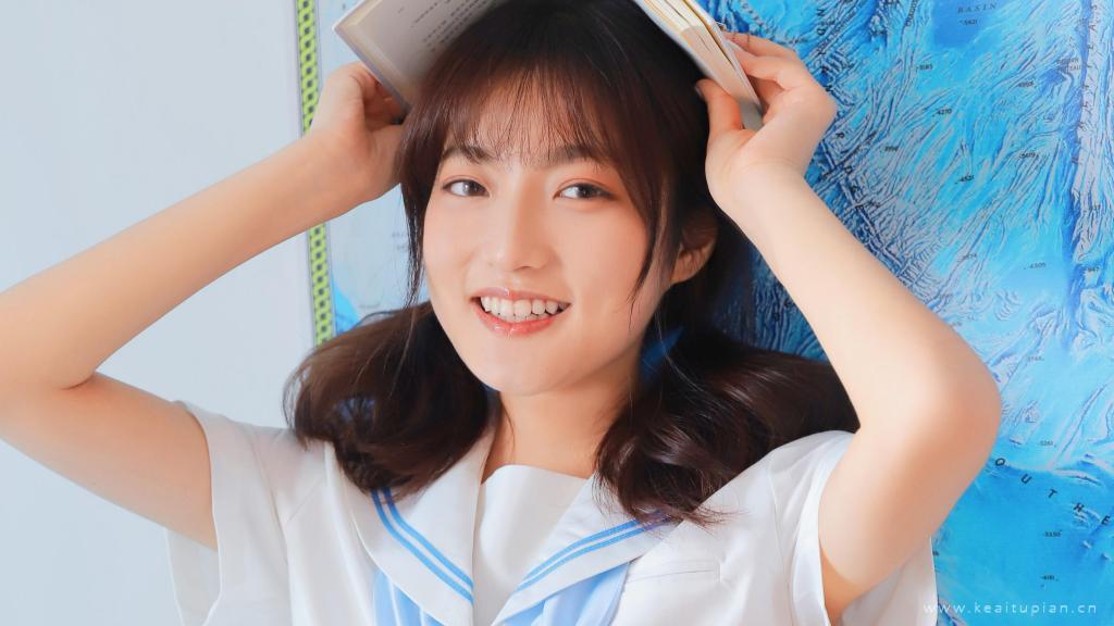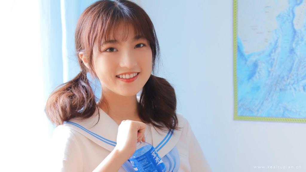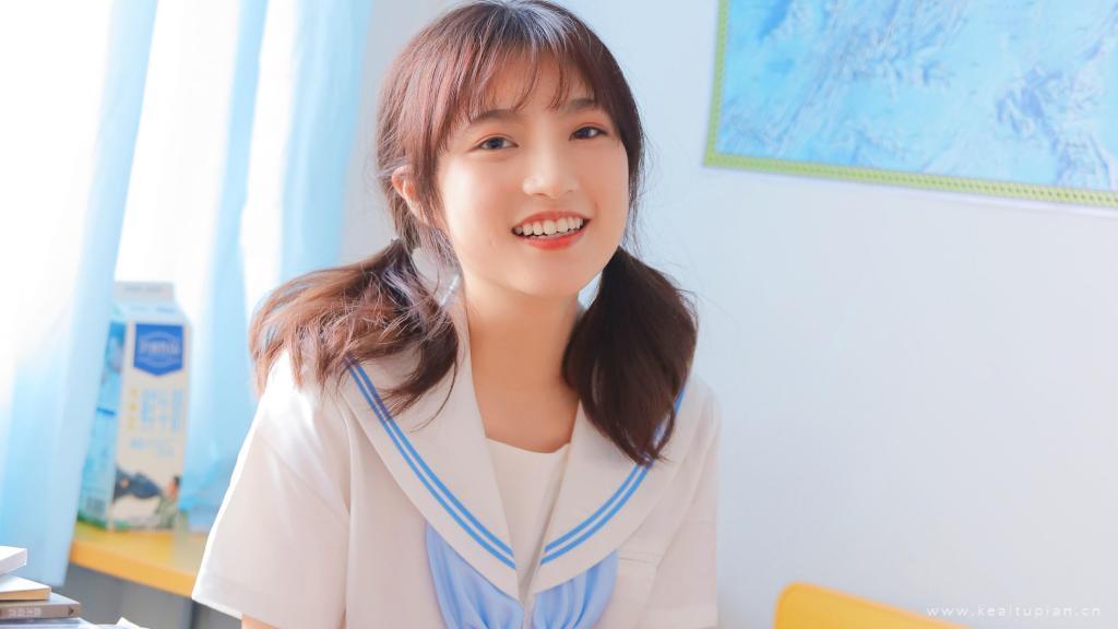 笑起来可爱的圆脸女生双马尾学生范写真图片