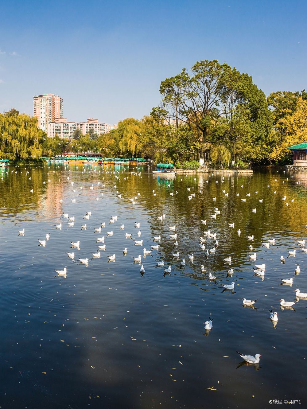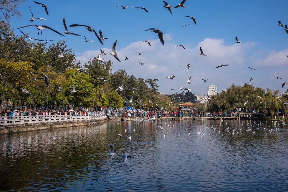翠湖公园位于昆明市区北部,云南大学对面,是昆明市区环境优美的城市公园,也是很多游客在昆明市内游玩的好去处。这里湖水碧绿,树木、荷塘典雅优美,冬季时还可以喂养、拍摄成千上万的红嘴鸥,趣味十足。