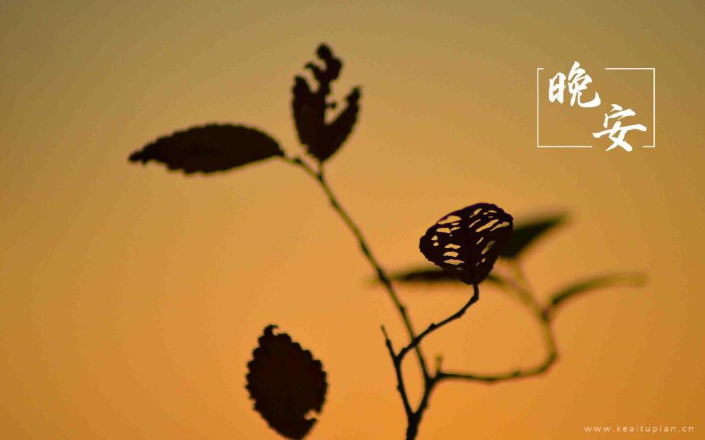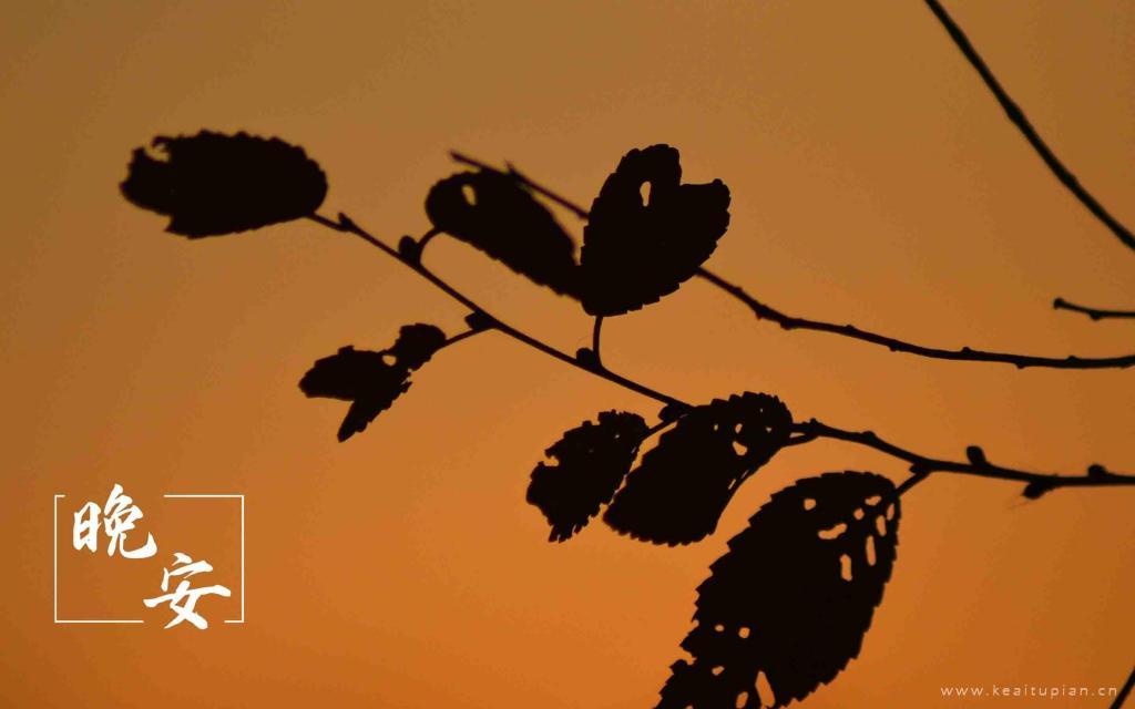 晚安精选静谧黄昏下的叶子剪影唯美风景图片