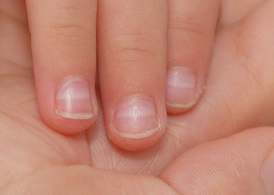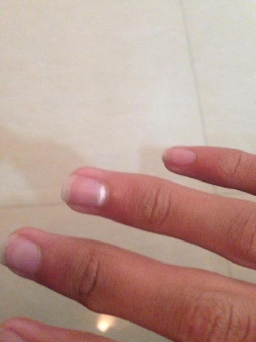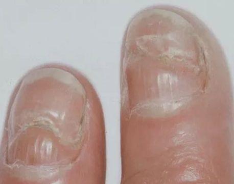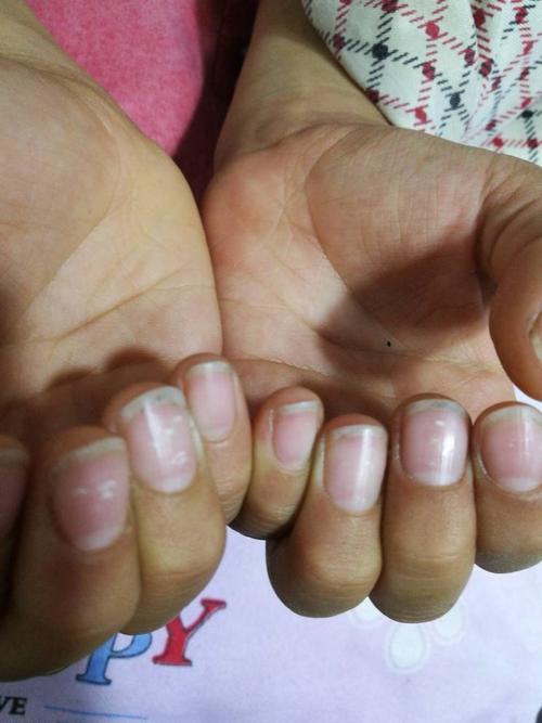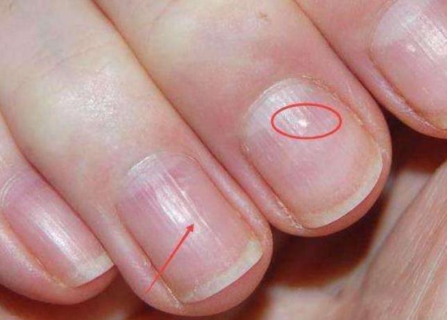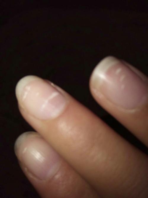 两个手的大拇指指甲里面都有一条白色的竖线,这是哪里