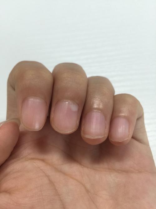 有两个手指甲中间有白色斑块,怎么回事,刚开始感觉没这么大,现在感觉