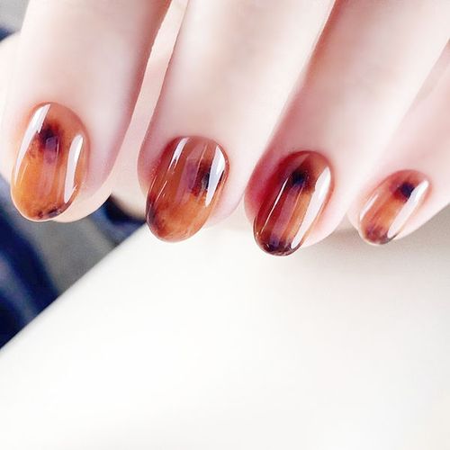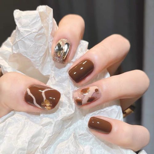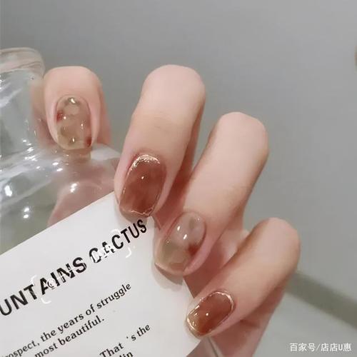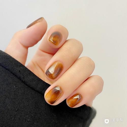 棕色琥珀晕染美甲图片