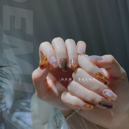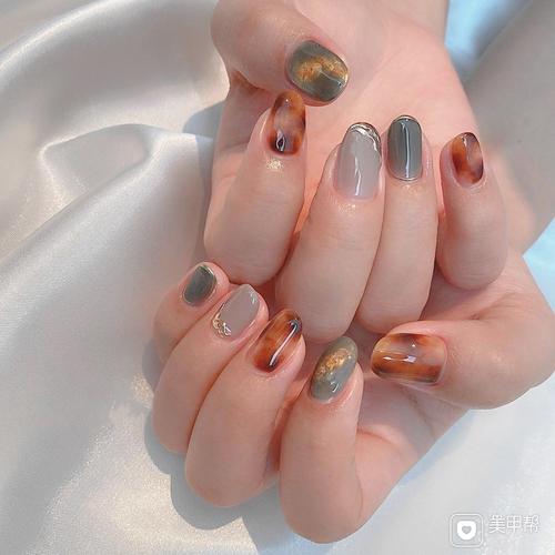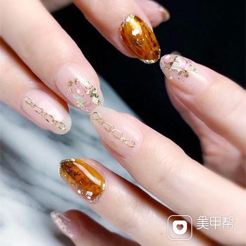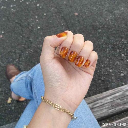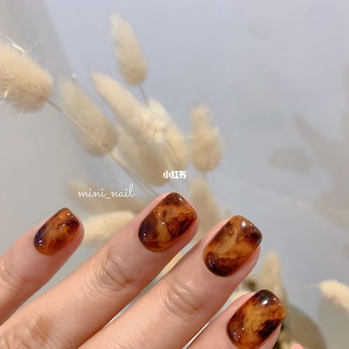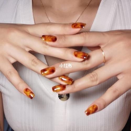 秋冬玳瑁琥珀美甲_显白_琥珀色美甲_美妆_美甲