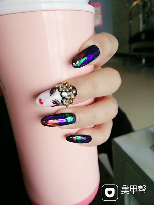 手绘脸谱玻璃纸美甲图片