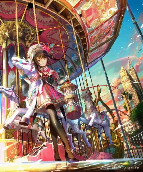 唯美在旋转木马旁一直不肯离开图片