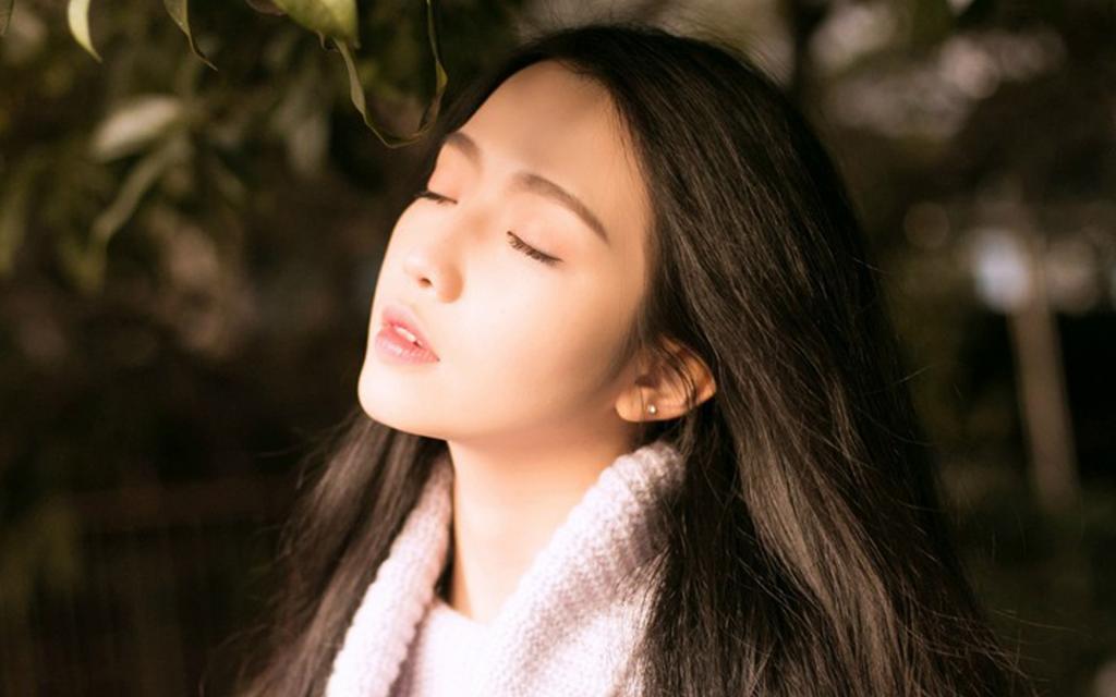 闭着眼感受阳光的气质美女唯美意境图片