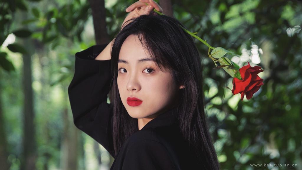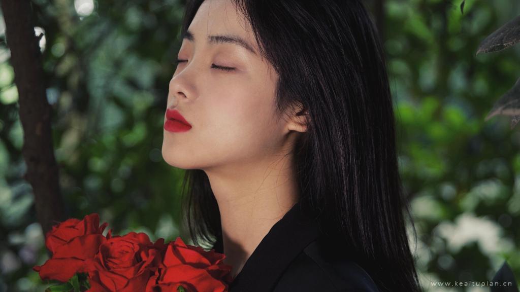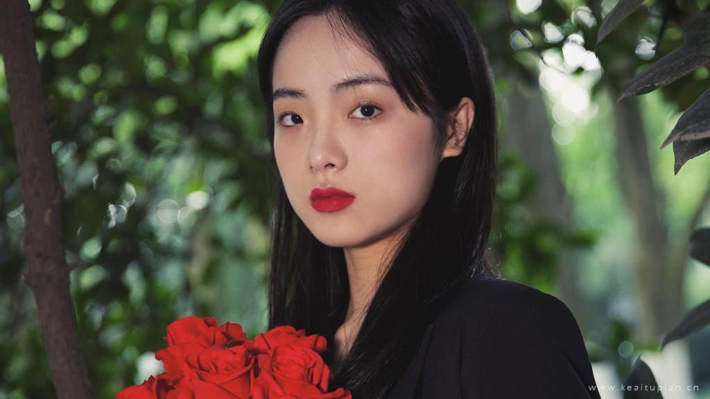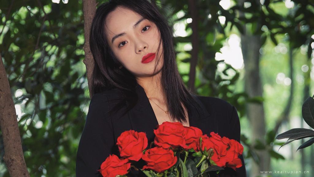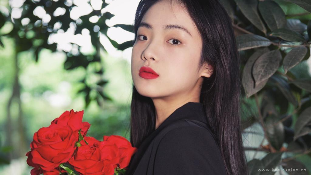 手捧红花的气质美女高清写真壁纸图片
