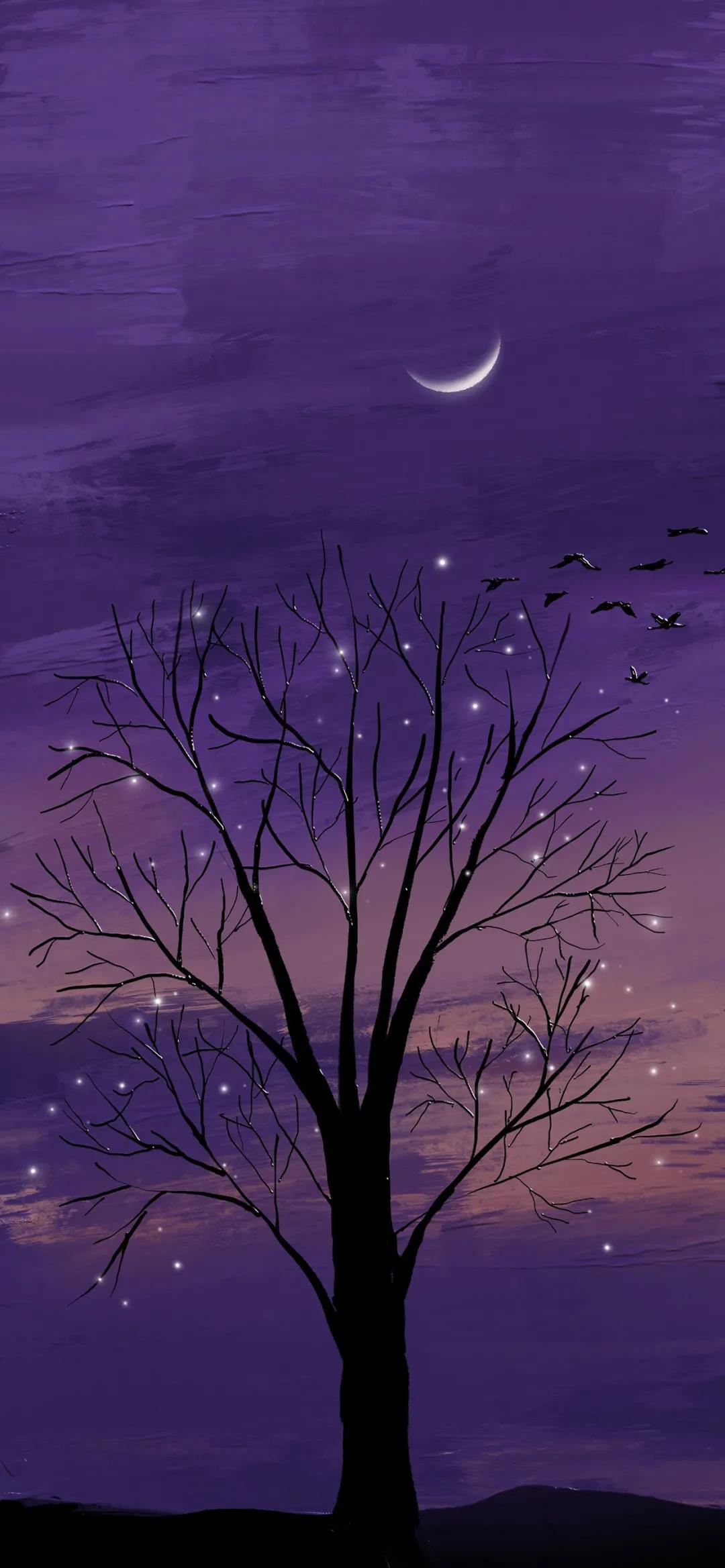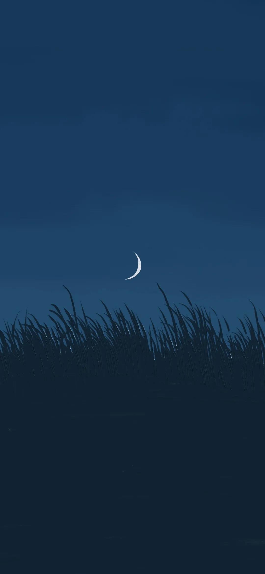 夜空中一轮弯弯的月亮唯美风景手机壁纸图片