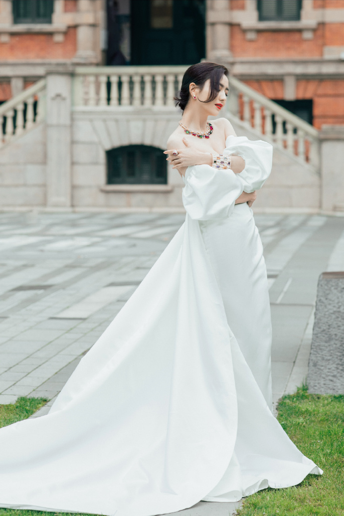 佟丽娅抹胸拖尾长裙性感知性写真图片