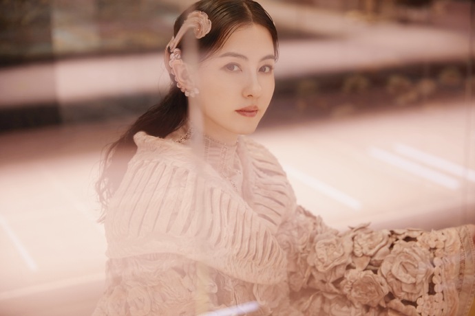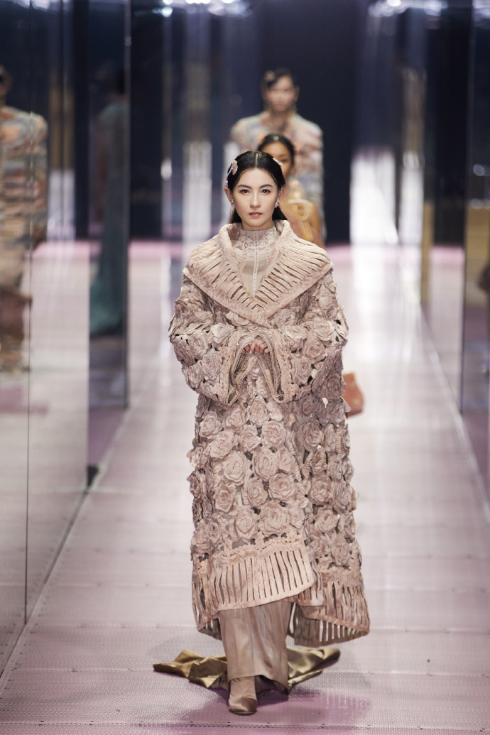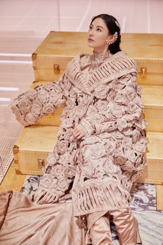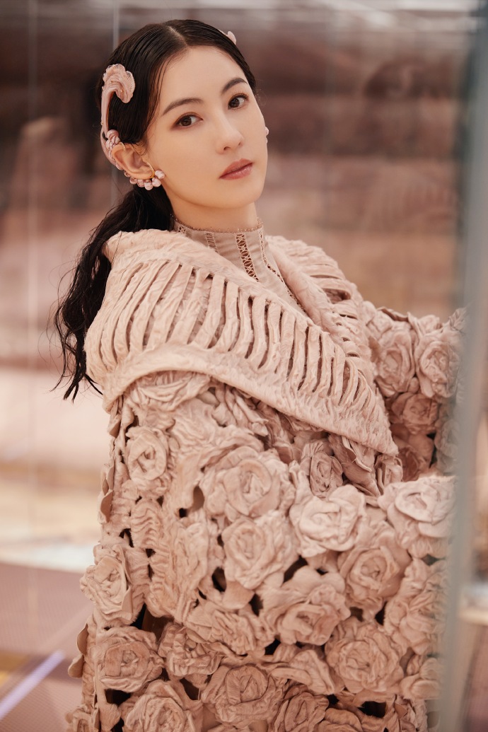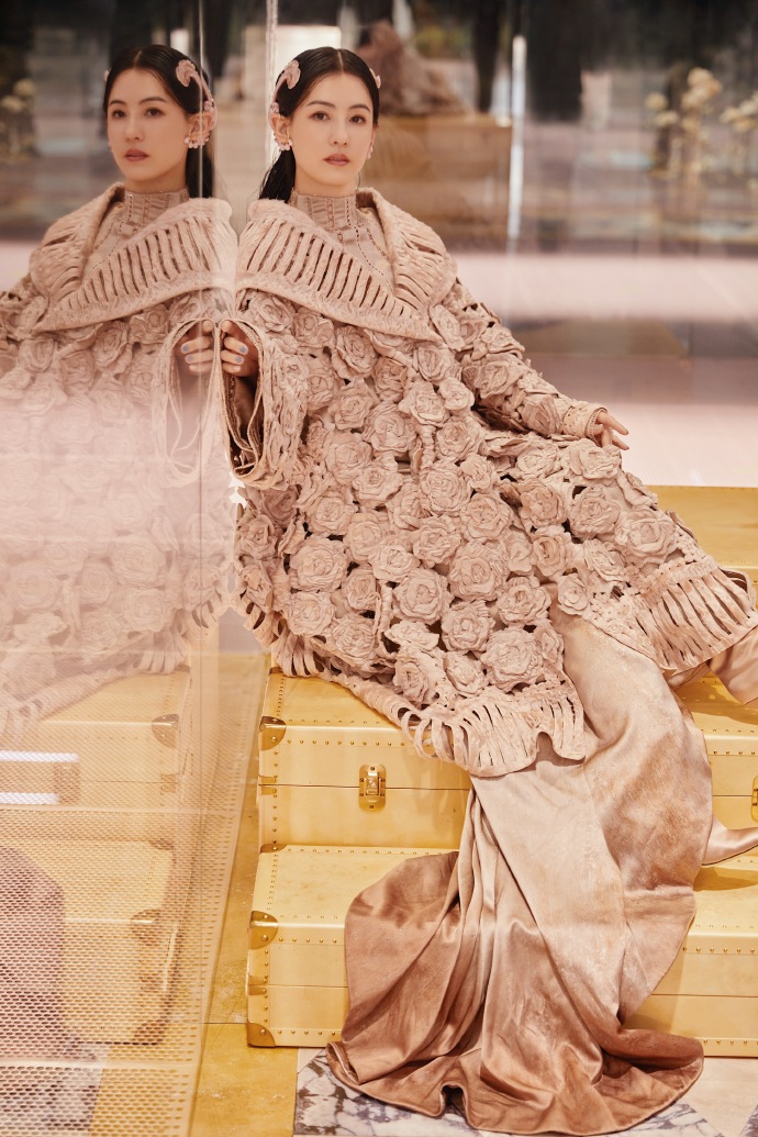 张柏芝玫瑰编织直筒裙高贵优雅高清图片