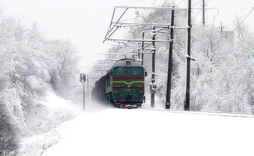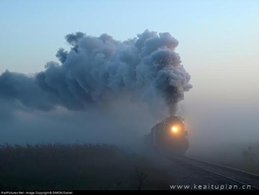好看的皑皑的白雪下着的火车也快速地驶过图片