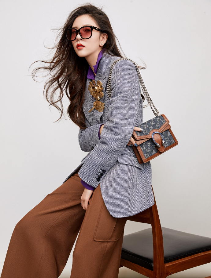 宋茜墨绿色抹胸长裙造型魅力高清写真