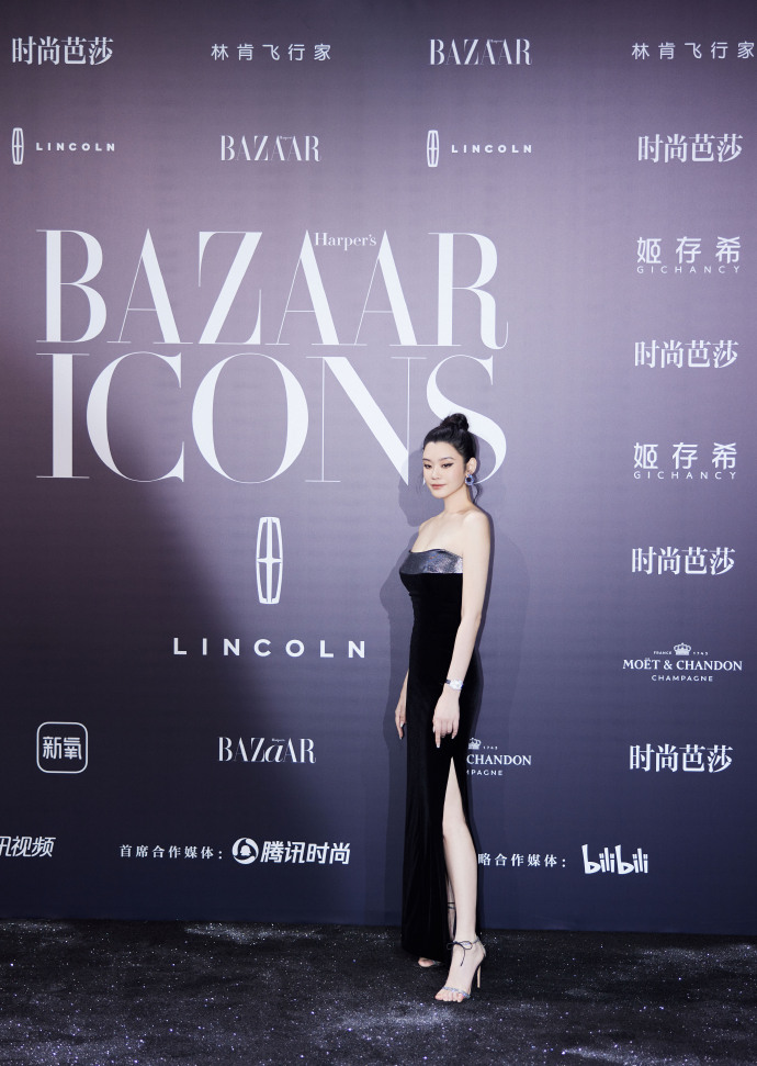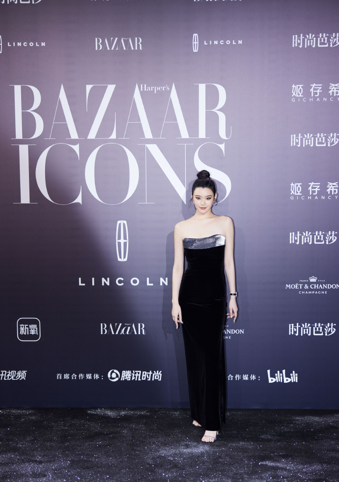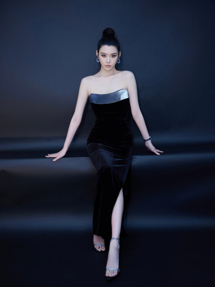 奚梦瑶丝绒质地黑色礼服猫眼妆高级写真图片