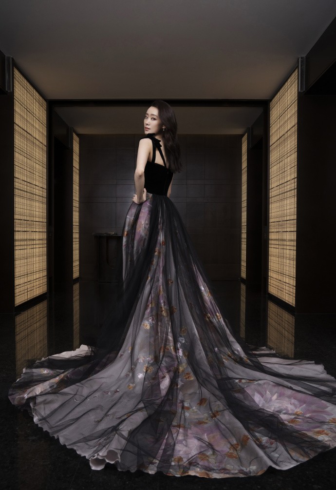 黄圣依星光格纹礼裙高贵华丽写真图