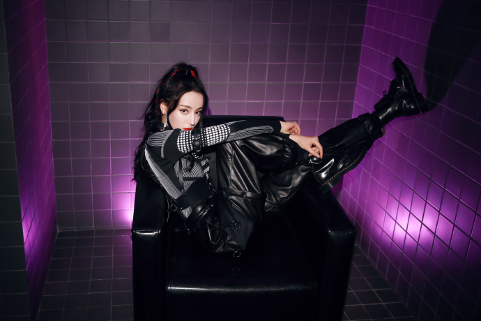 迪丽热巴高马尾机车造型酷飒写真图片