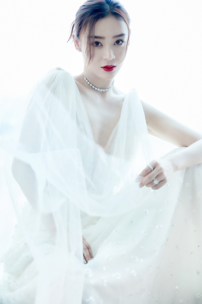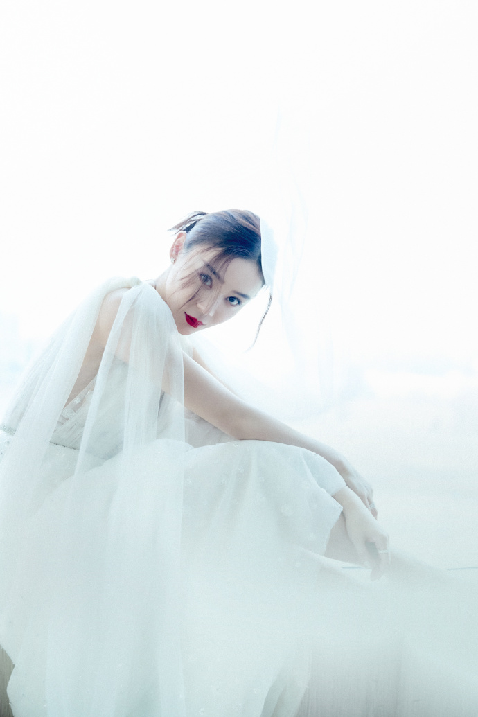 袁姗姗云雾白纱长裙朦胧高级写真图片