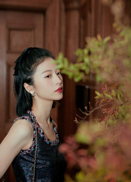 周雨彤刺绣长裙简约风高清写真图片