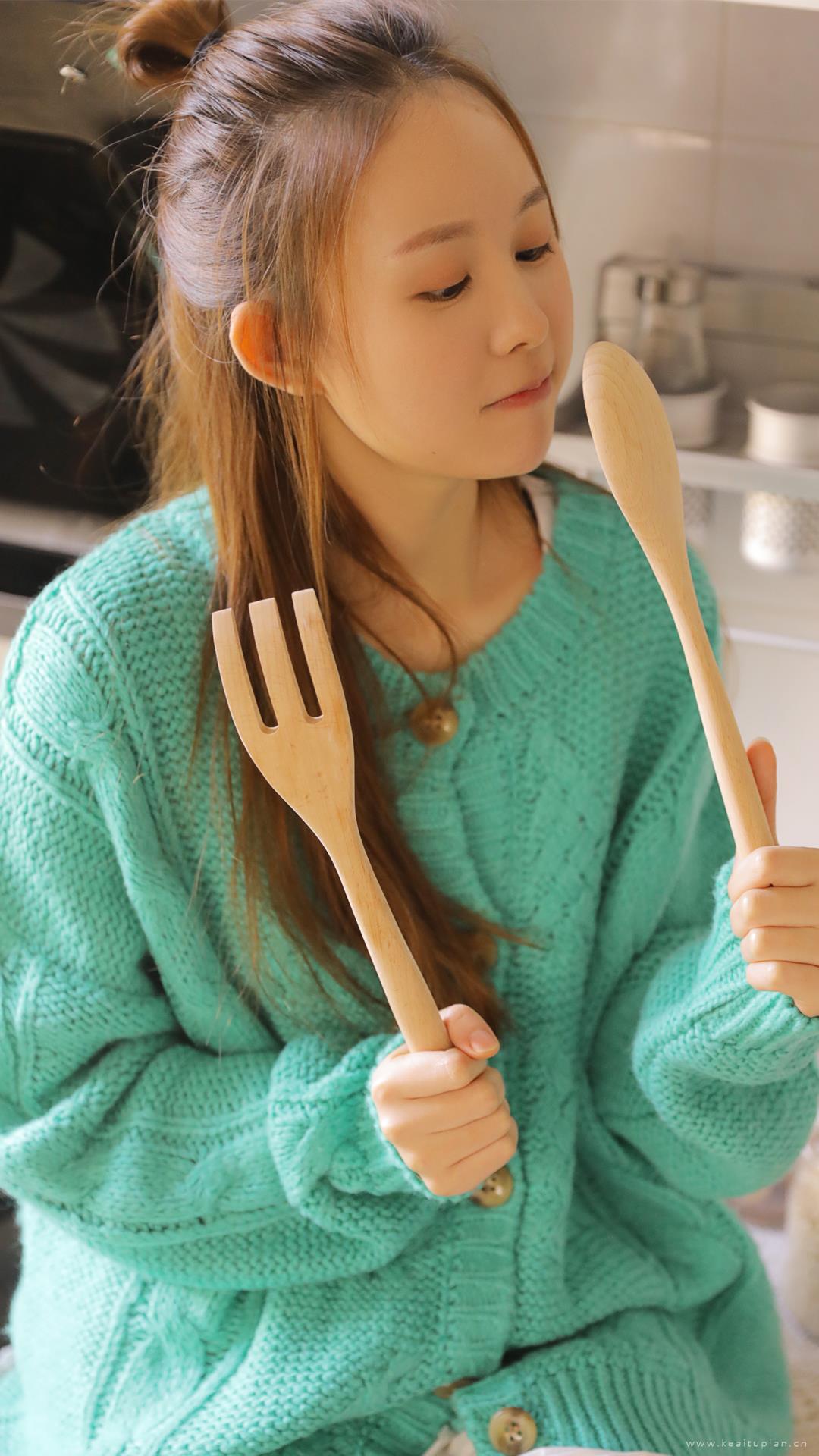 居家美女厨房俏皮可爱写真图片