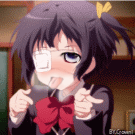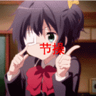 摇手指这个梗最早出自于《中二病也要谈恋爱》,之后被鬼畜了一把。