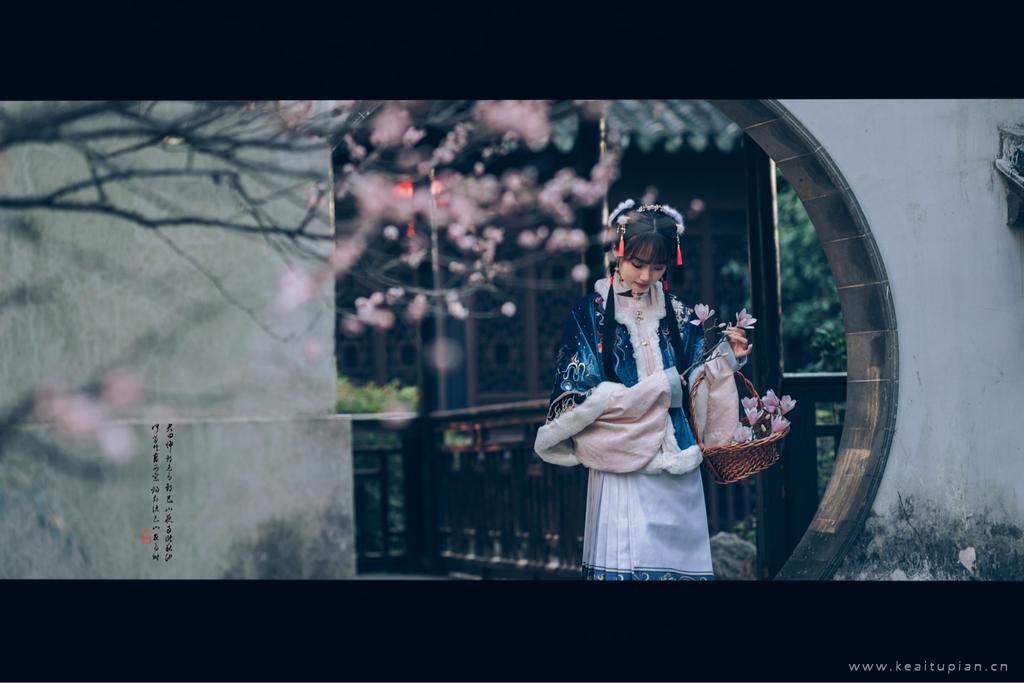 冬装汉服美女漫步园林古色古香古风写真图片