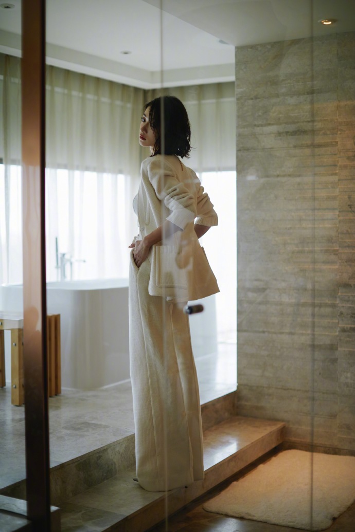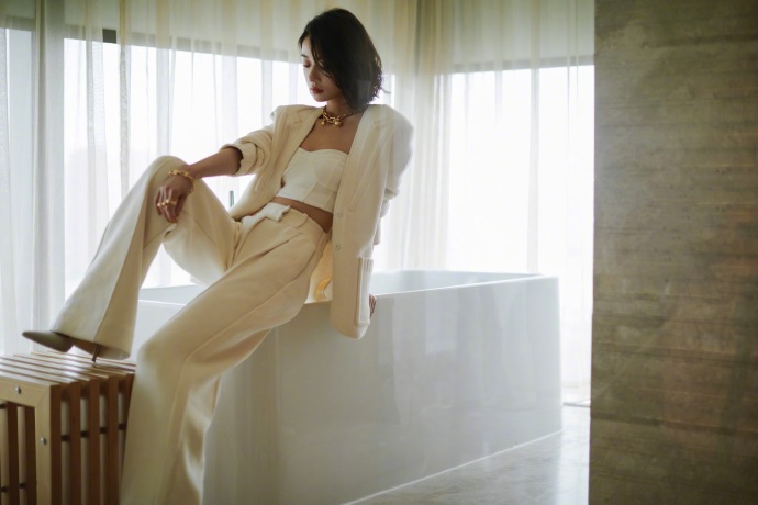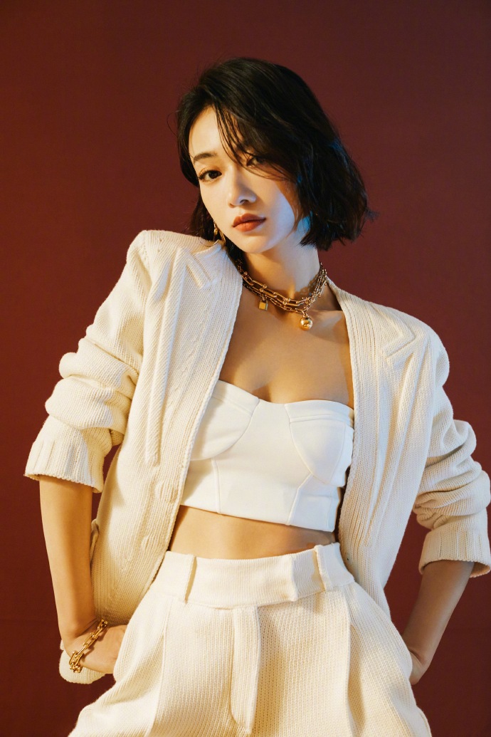 吴谨言月光白抹胸套装温柔优雅高清写真