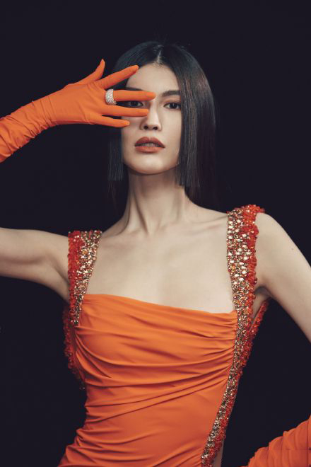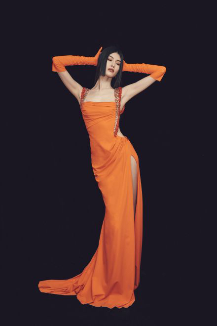 何穗橘色露背长裙大秀逆天美腿高清写真