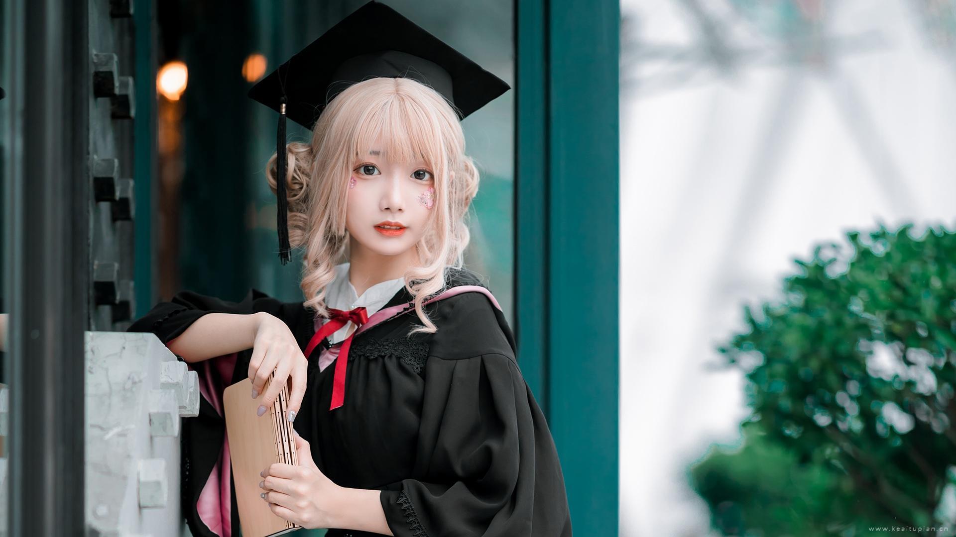 唯美可爱美女学士服森系唯美高清图片桌面壁纸
