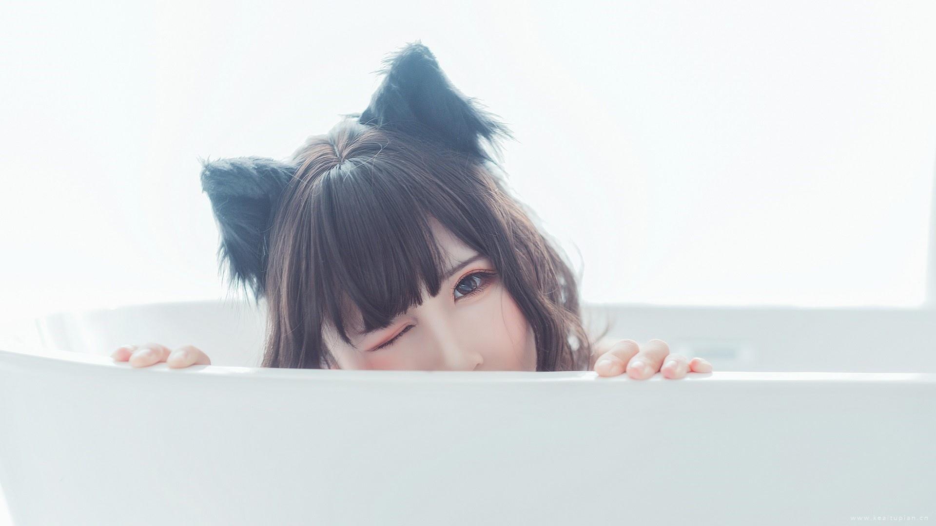 唯美性感美女可爱短发猫耳高清图片桌面壁纸