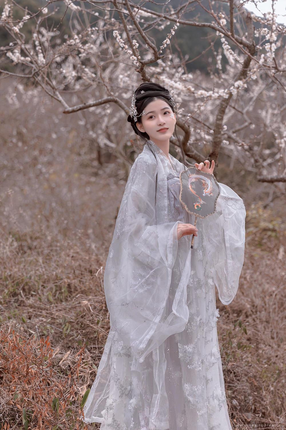 梨花树下白衣飘飘的古装美女优雅温柔古风写真图片