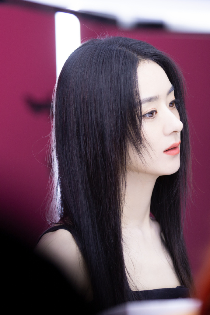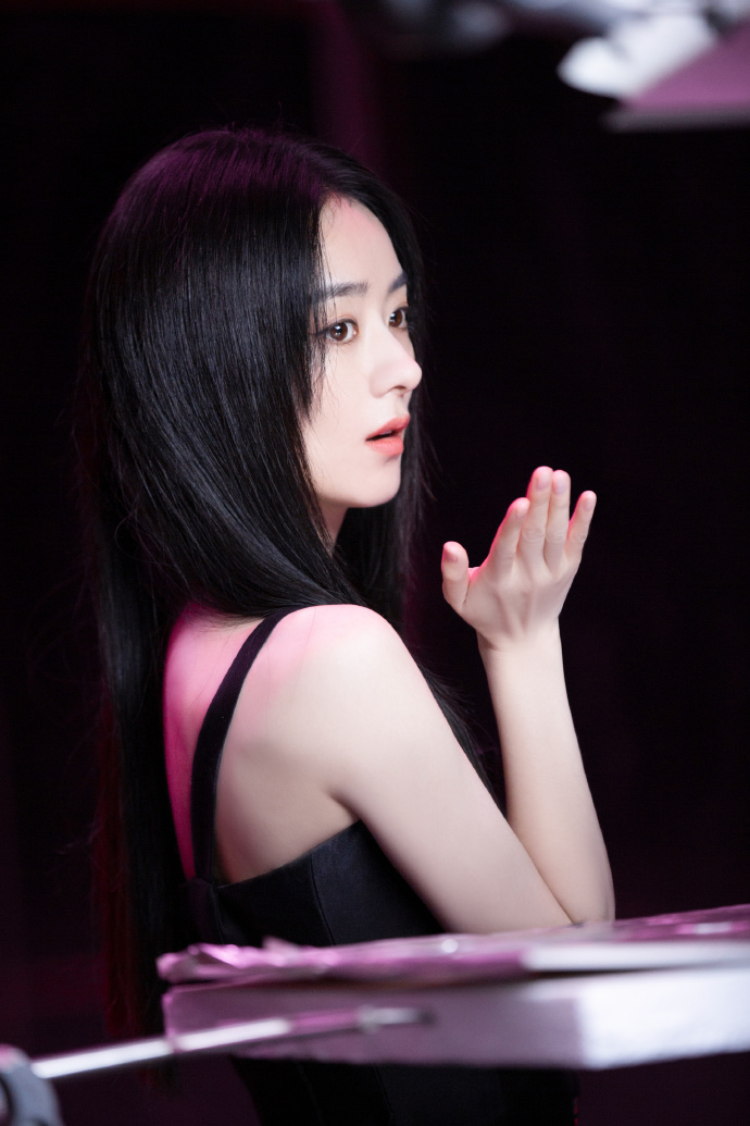 赵丽颖黑长直造型攻气工作花絮图片