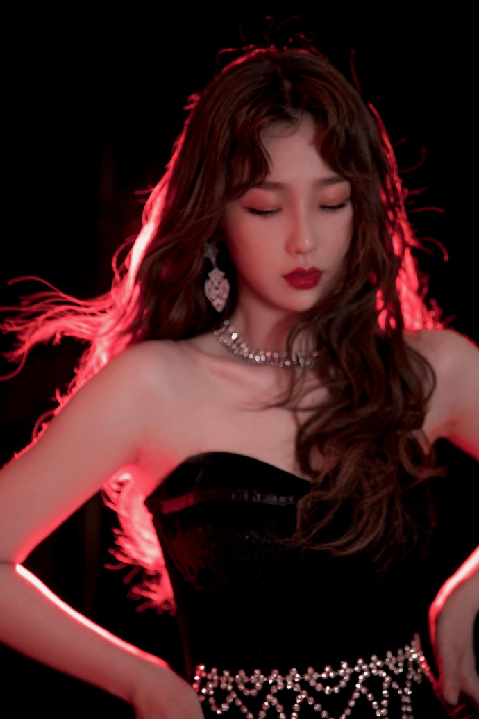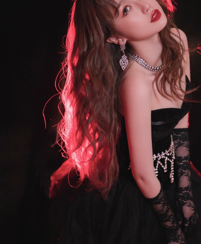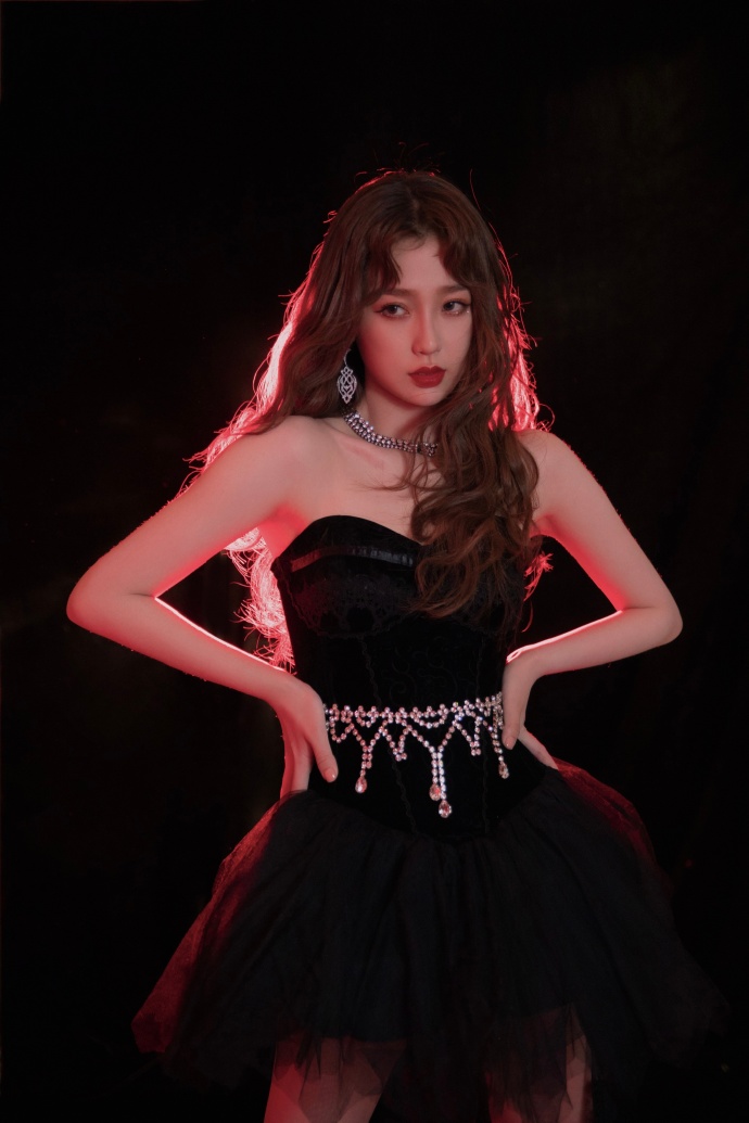 虞书欣暗黑裹胸长裙造型性感魅力写真图片