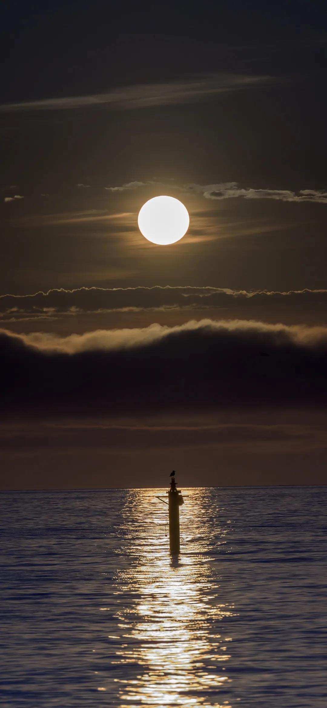 圆月弯月各有各的皎洁唯美夜晚天空风景高清壁纸图片