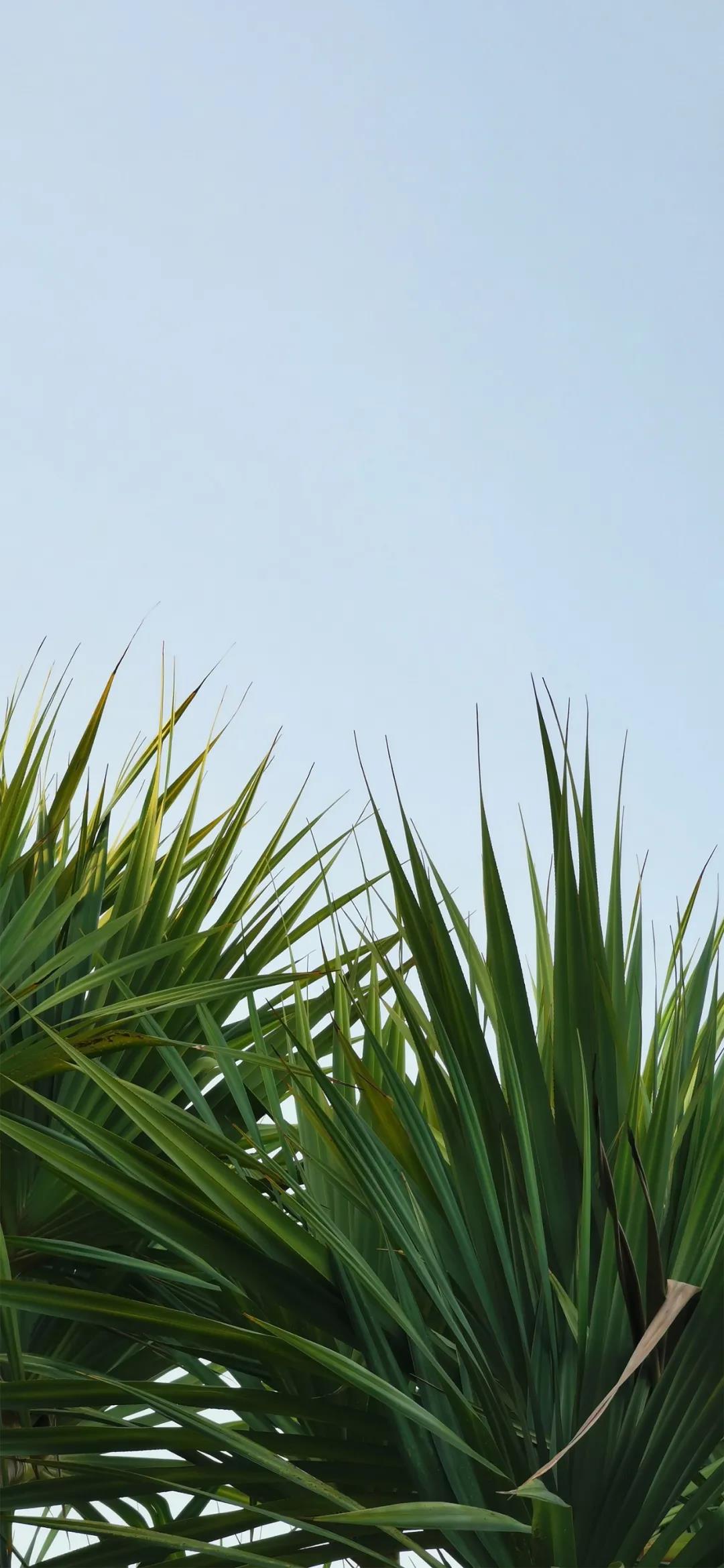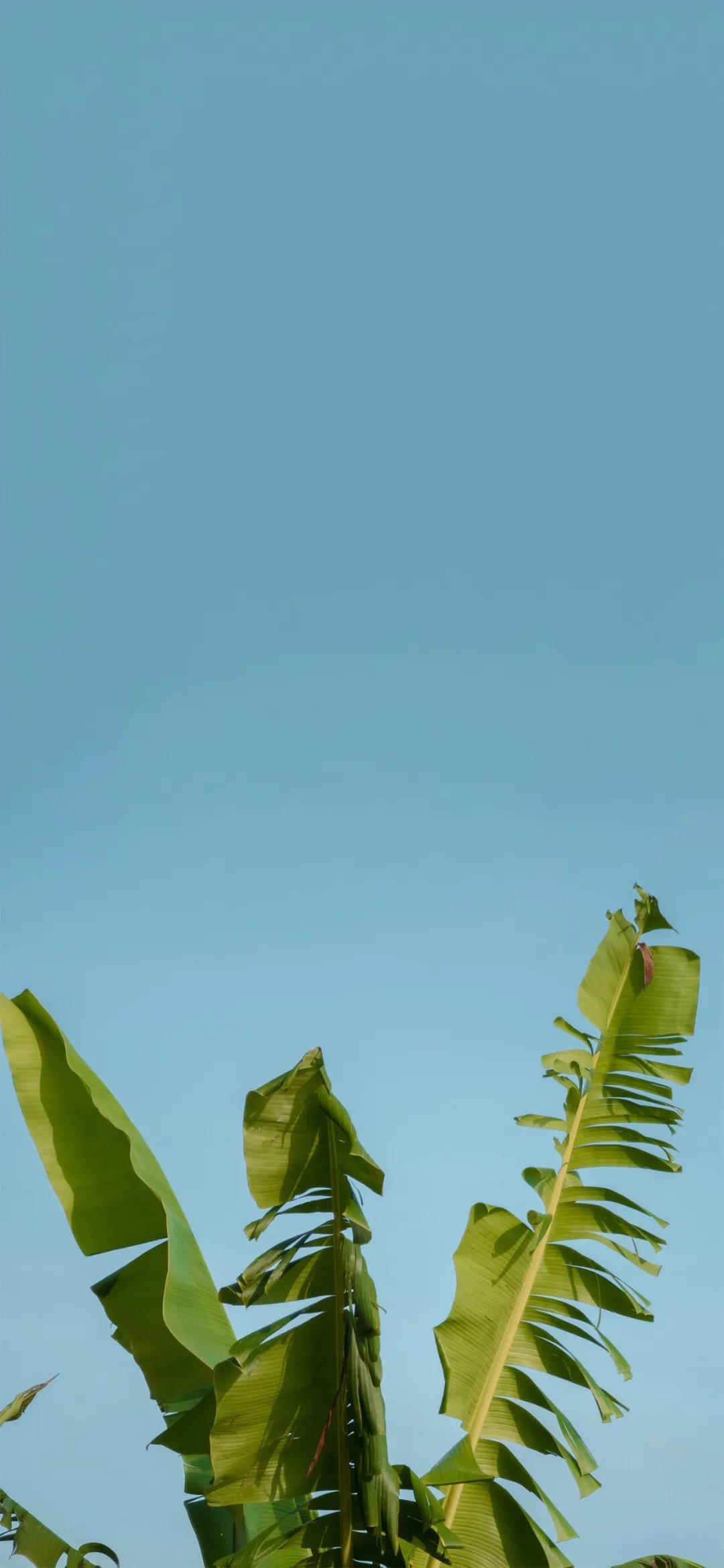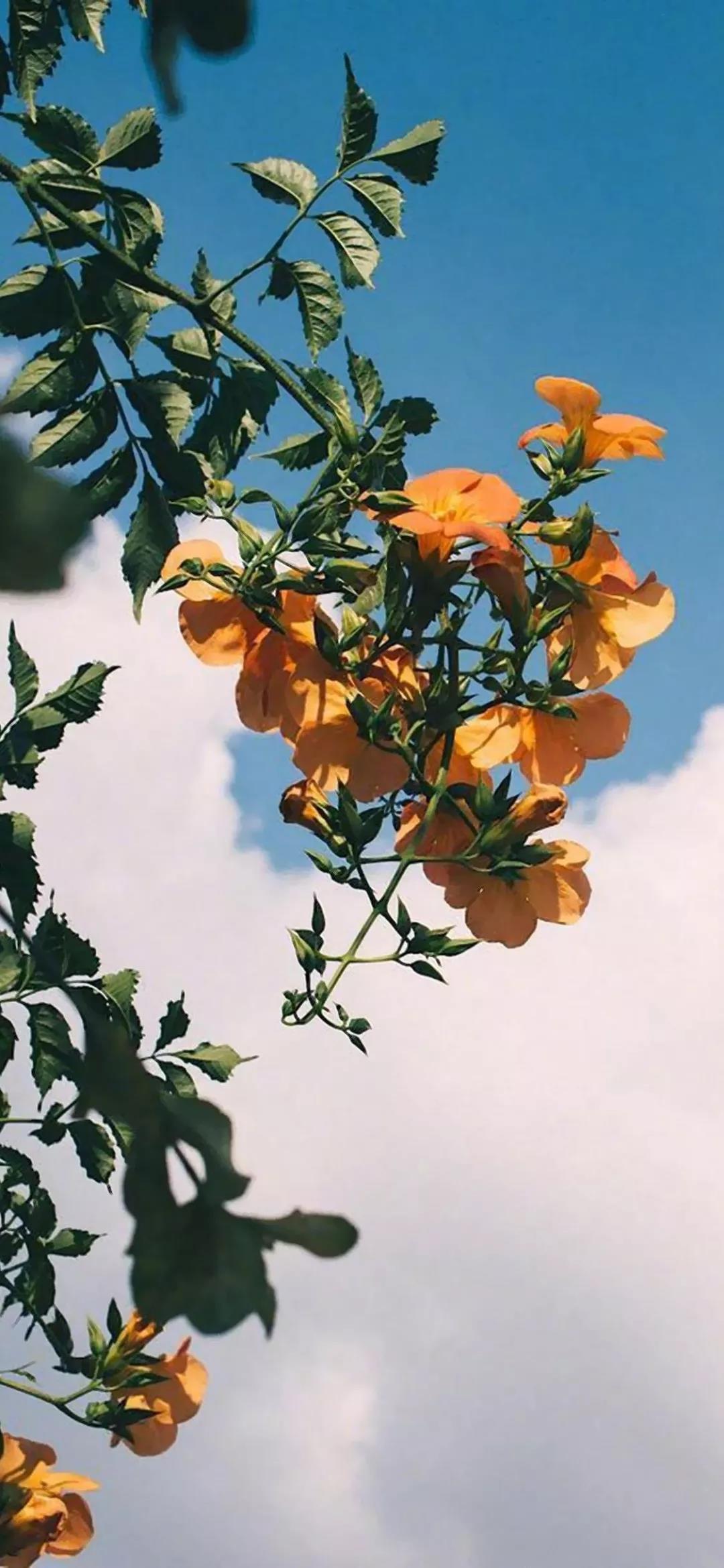 对着蓝色天空的花朵绿叶唯美清新手机壁纸图片
