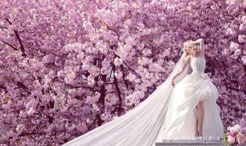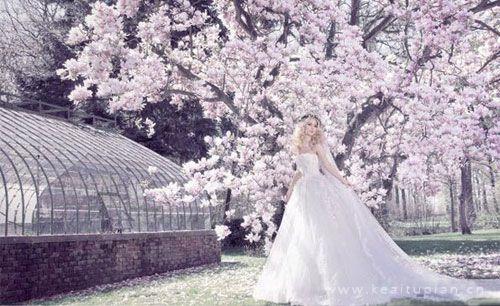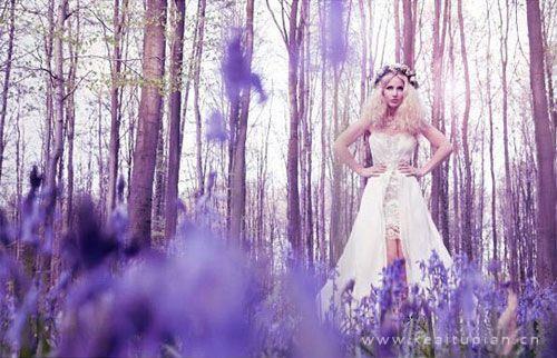 花丛中的白裙新娘唯美造型壁纸写真图片